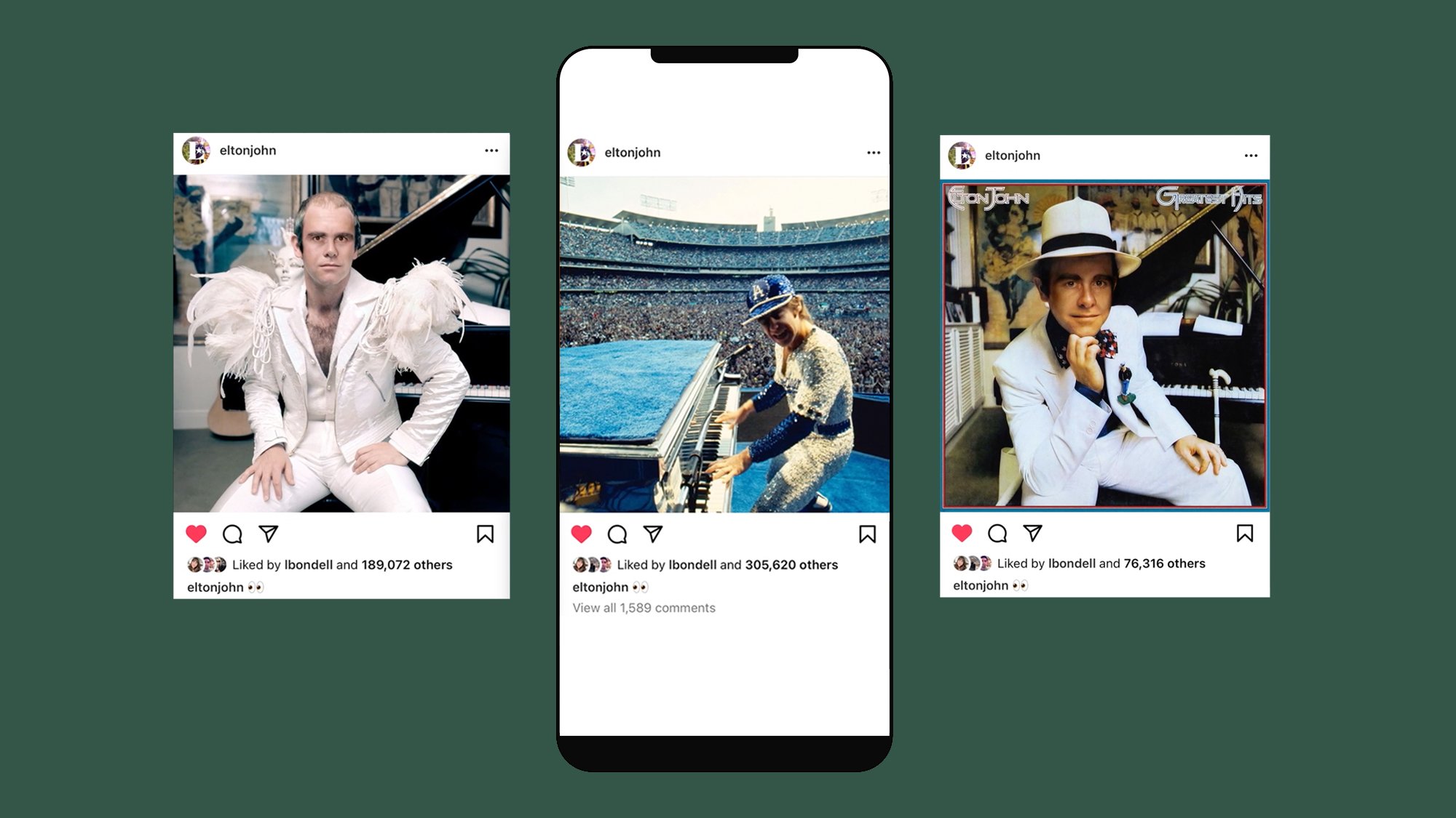 To generate the most buzz around Elton's glasses, we removed them from his most iconic photos.